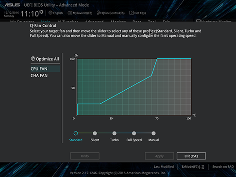 Control gráfico de los ventiladoresAjusta los ventiladores individualmente dibujando una curva con el ratón.