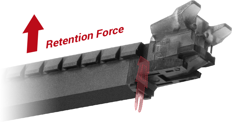 SafeSlot Core es la ranura PCIe exclusiva de ASUS. Con un diseño fortificado anclado a la tarjeta madre con un gancho especial, Safeslot Core provee una retención 1.6 veces mayor y 1.3 veces más resistencia de compartición que las ranuras de expansión estándar.