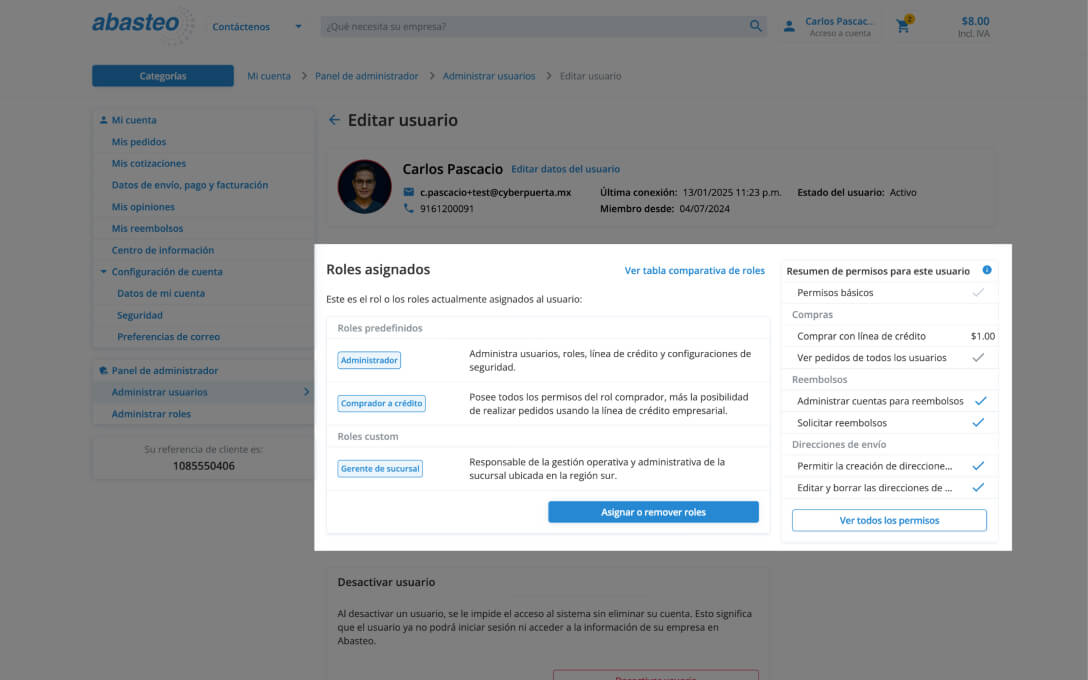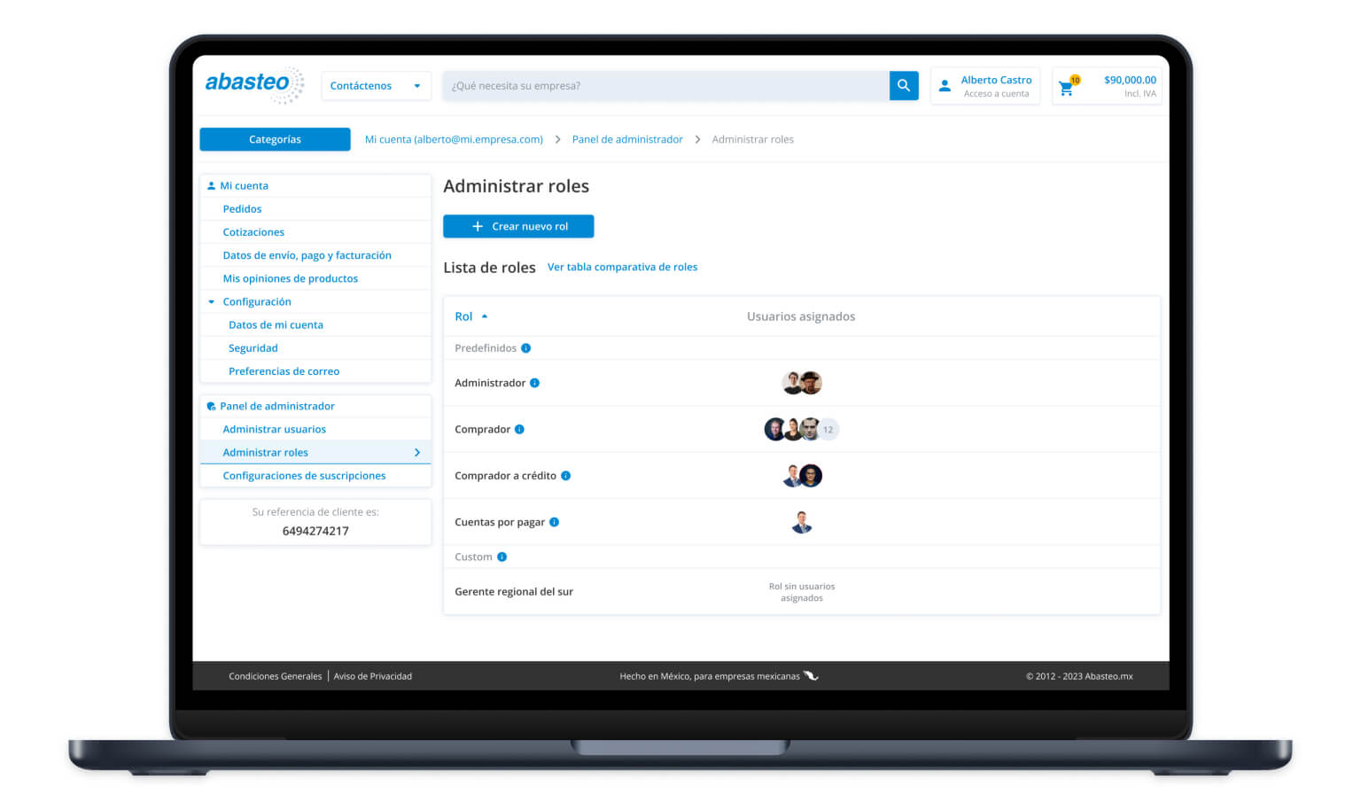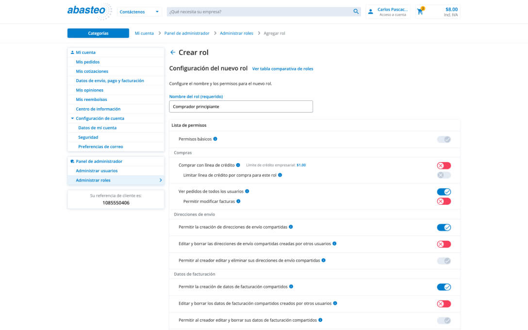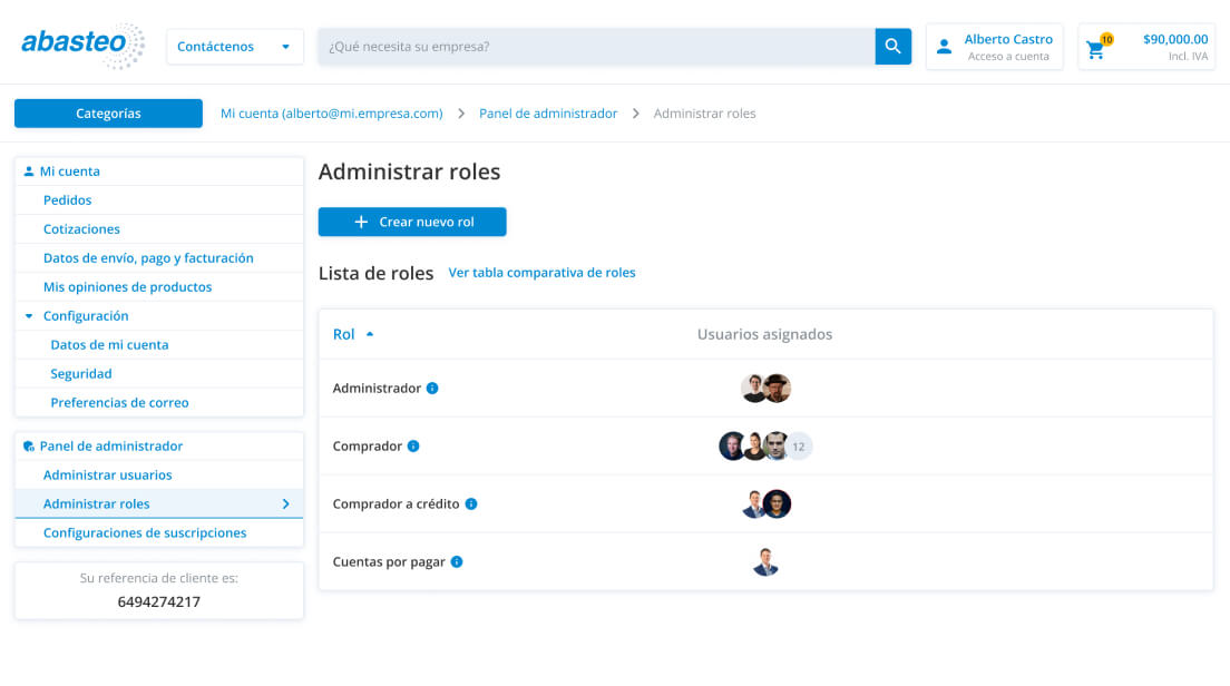 ² Estos roles puede ser utilizados solo en las cuentas que poseen una línea de crédito activa en Abasteo.
