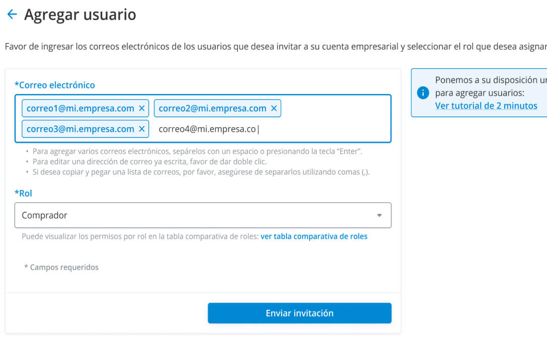 para invitar a varios usuarios a su cuenta empresarial. Cada