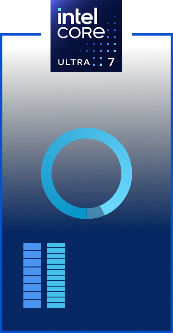 ¿Quiere jugar al mejor nivel consumiendo 86 W menos de energía de sistema3 y a un precio asequible? Pues ya puede gracias a nuestros procesadores de serie 7 más recientes, que ofrecen núcleos rápidos y rendimiento con IA para jugar de forma silenciosa y sin sobrecalentamiento.