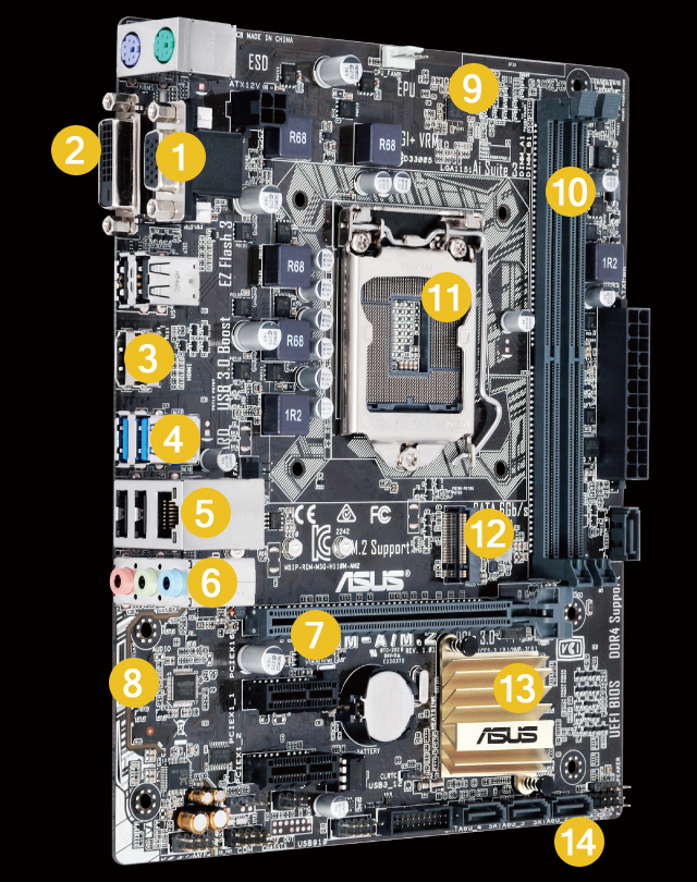 Esta tarjeta madre es compatible con los procesadores de la nueva 6ª generación Intel® Core™ i7/i5/i3/Pentium®/Celeron® con zócalo LGA1151. Incluye controladoras de gráficos, memoria y PCI Express integradas para soportar la salida de gráficos integrada en la tarjeta mediante chipsets dedicados, memoria DDR4 de doble canal (2 DIMM) y 16 vías PCI Express 3.0/2.0.
