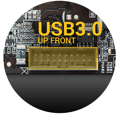 Hemos colocado los conectores USB 3.0 justo donde los necesitas: 2 conectores USB 3.0 en el panel frontal. Disfruta de unas transferencias de datos 10 veces más rápidas que USB 2.0, y deja atrás los dolores de espalda para alcanzar los puertos traseros.
