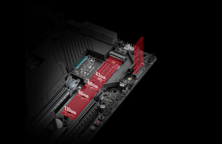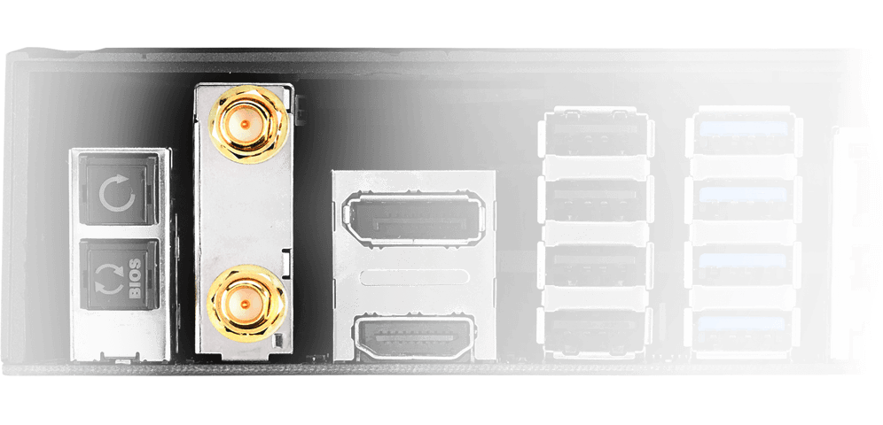 ROG Maximus IX Code tiene Wi-Fi 802.11ac de siguiente nivel con 2x2 antenas de banda dual de 2.4/5GHz con velocidad de transferencia de hasta 867 Mbps* — y lo último de Multi-Usuario, tecnología de salida Multiple In Multiple Out (MU-MIMO) para asegurar la conectividad de cada usuario** a la mejor velocidad posible.