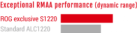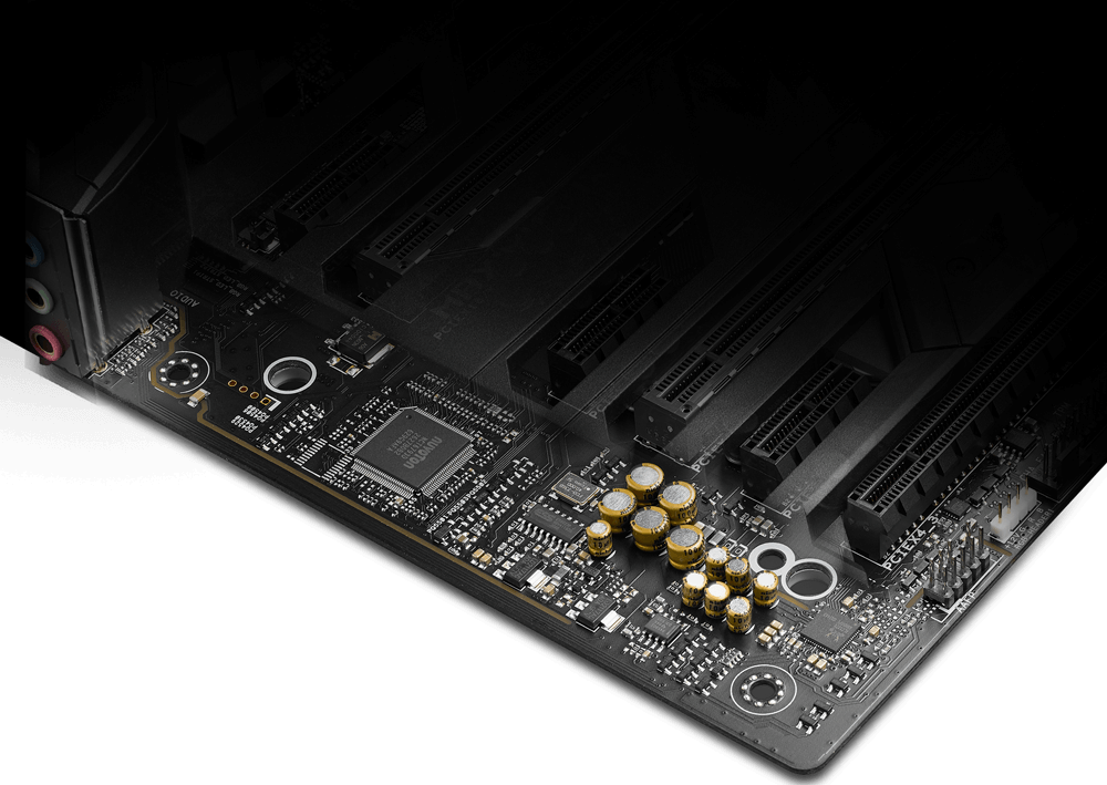 La increíble tecnología de audio de ROG SupremeFX ha mejorado, entregando un excepcional radio de señal-ruido de 113dB en la conexión de entrada — ¡y eso da la mejor calidad de grabación de todos los tiempos! También hemos añadido un regulador low-dropout para una entrega de energía más limpia al codec SupremeFX S1220, un convertidor ESS® Sabre Hi-Fi ES9023P digital-a-análogo para una salida superior en el panel frontal, un amplificador operacional Texas Instruments® RC4580 para una alta ganancia con baja distorsión — lo que da un audio envolvente como nunca antes.