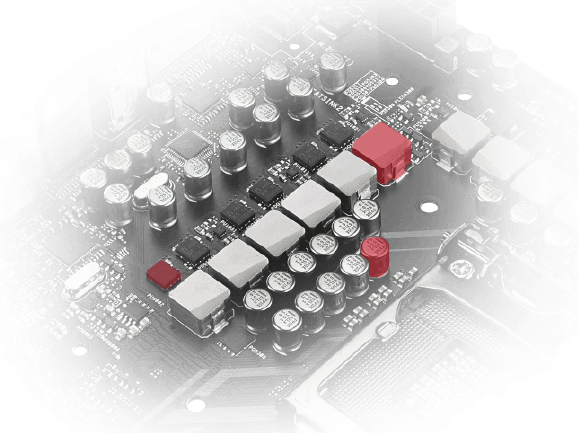 El reverenciado controlador digital de poder de ROG ahora brinda aún más fina energía, con MOSFETs Texas Instruments NexFET™, capacitores de aleación micro-fina, control Digi+ PWM y capacitores negros metálicos de 10K — asegurando que Extreme Engine Digi+ siempre entregue los más suaves voltajes.