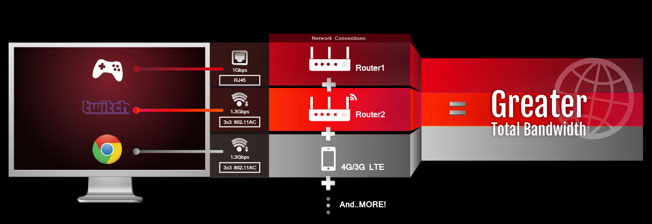 *La velocidad real puede variar, y los puntos de conexión de Wi-Fi operan a 802.11a/b/g/n Windows 10 actualmente no soporta la funcionalidad de punto de conexión de Wi-FiGameFirst IV optimiza el tráfico de red para juegos en línea más rápidos — y ahora añadimos Multi-Gate Teaming para unir hasta 4 redes para un máximo ancho de banda y jugabilidad más suave. También disfrutarás el nuevo Intelligent mode, que compila bases de datos automáticamente analizando los nuevos datos para asegurar el máximo rendimiento en cada juego.