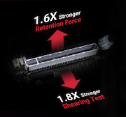 SafeSlot el es puerto PCIe reinventado por ASUS y creado para proveer retención superior y resistencia. Fabricada en un solo paso, un nuevo proceso de inserción-moldeado integra en el puerto un metal fortificante para una fortaleza inherente al puerto, lo que da un anclaje firme al PCB mediante puntos de soldadura adicionales.