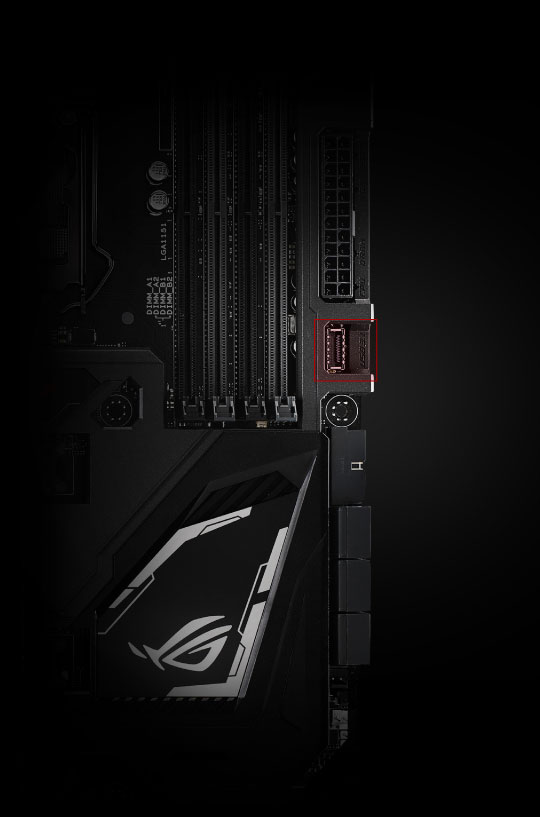 USB-C es el conector reversible a prueba del futuro — y ROG Maximus IX Code te permite poner la conexión ¡justo donde la necesitas! Con el conector USB 3.1 incluído que puedes colocar en el panel frontal para que siempre lo tengas a tu alcance.