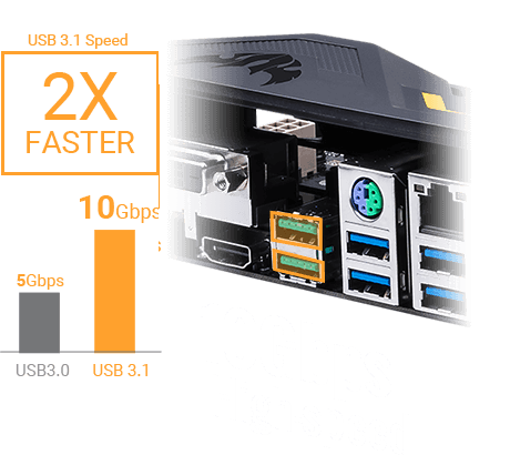 Con tres puertos USB 3.1 Tipo-A para una retrocompatibilidad completa con los dispositivos USB existentes y un puerto reversible 3.1 Tipo-C, estás completamente listo para experimentar velocidades de hasta 10Gbps.