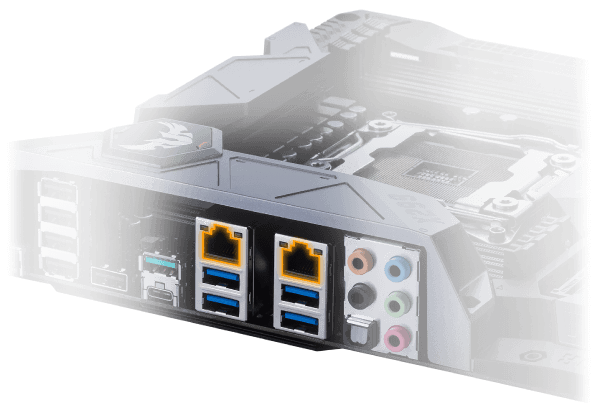¡No deje que el funcionamiento lento de la red interrumpa su flujo de trabajo! Con conectores Intel Gigabit Ethernet dual, TUF X299 Mark 1 mantiene sus datos moviéndose rápida y eficientemente. Con ambos puertos LAN unidos *, se beneficiará de un mayor ancho de banda para una mayor velocidad, un balanceo de carga automático para flujos de datos más suaves y una conmutación por error instantánea si algo falla, por lo que el acceso a sus archivos siempre es rápido, eficiente e ininterrumpido.