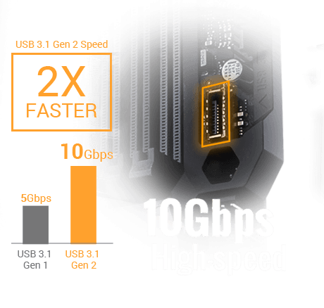 Con puertos reversibles USB 3.1 Gen 2 Type-C™ y Conector del panel frontal compatible USB 3.1 Gen 2 Type-A™, experimentará la flexibilidad de conexión final y velocidades de transferencia de datos de hasta 10 Gbps.