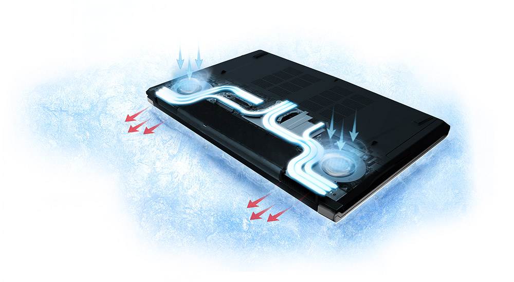 | El calor es uno de los elementos originales de la tierra. Es pura física que más energía creará más calor. La refrigeración es una batalla que es difícil de vencer, la tecnología de MSI, Cooler Boost 4 creada dos módulos térmicos colocando dedicados heat pipes para la GPU y CPU. Un click en el botón para acelerar los ventiladores y el conjunto de 6 heat pipes además de los dos ventiladores expulsarán el calor fuera del sistema, maximizando el rendimiento de la refrigeración hasta el nivel más alto.