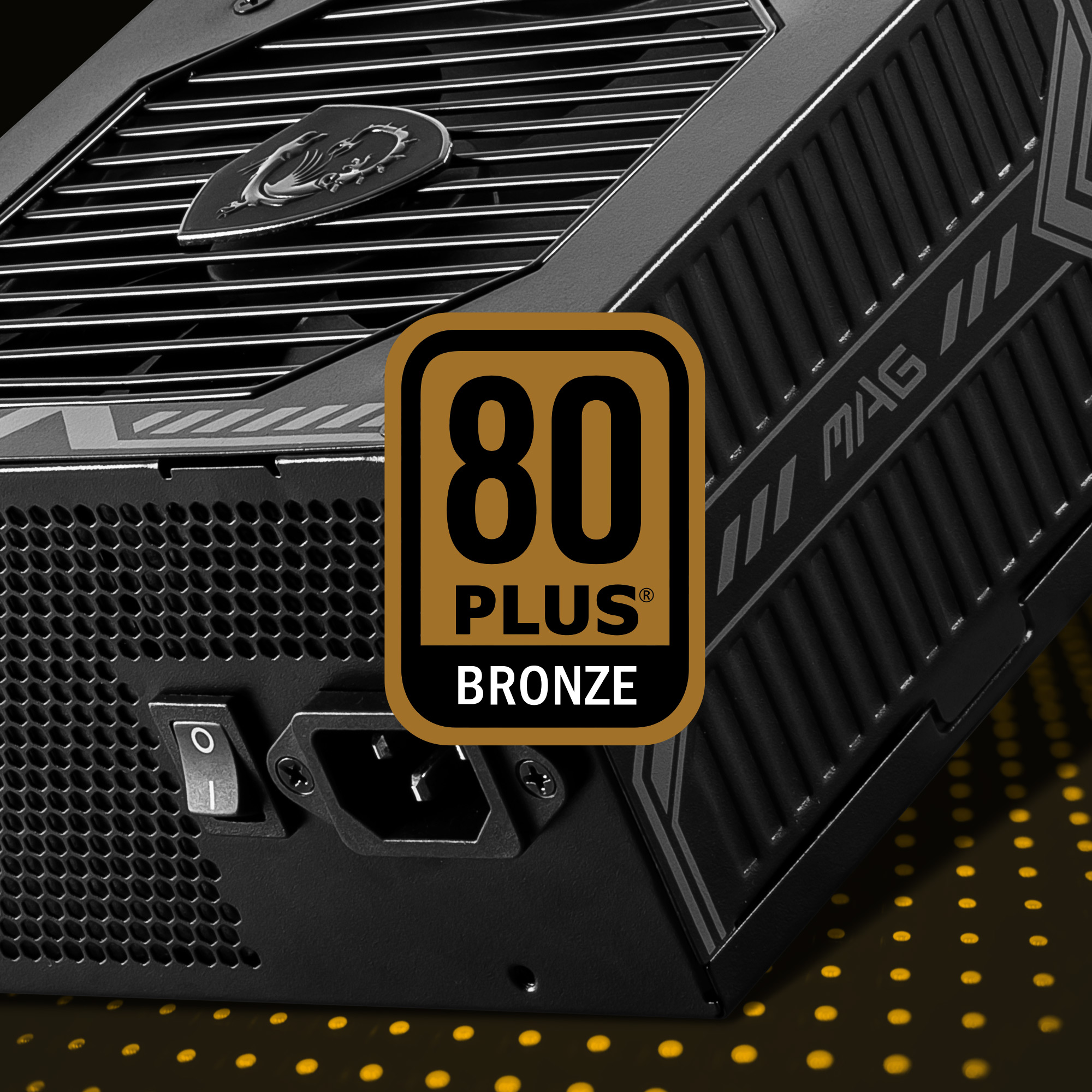 Las fuentes de alimentación para juegos MAG ofrecen a los jugadores una opción de alimentación básica segura, fiable y eficiente. Entre sus características principales se incluyen la certificación 80 PLUS Bronze, el diseño de circuito de CC a CC, el raíl único de 12 V, el PFC activo y el ventilador de bajo ruido. La MAG es una de las mejores opciones para los jugadores que se inician en el bricolaje informático.