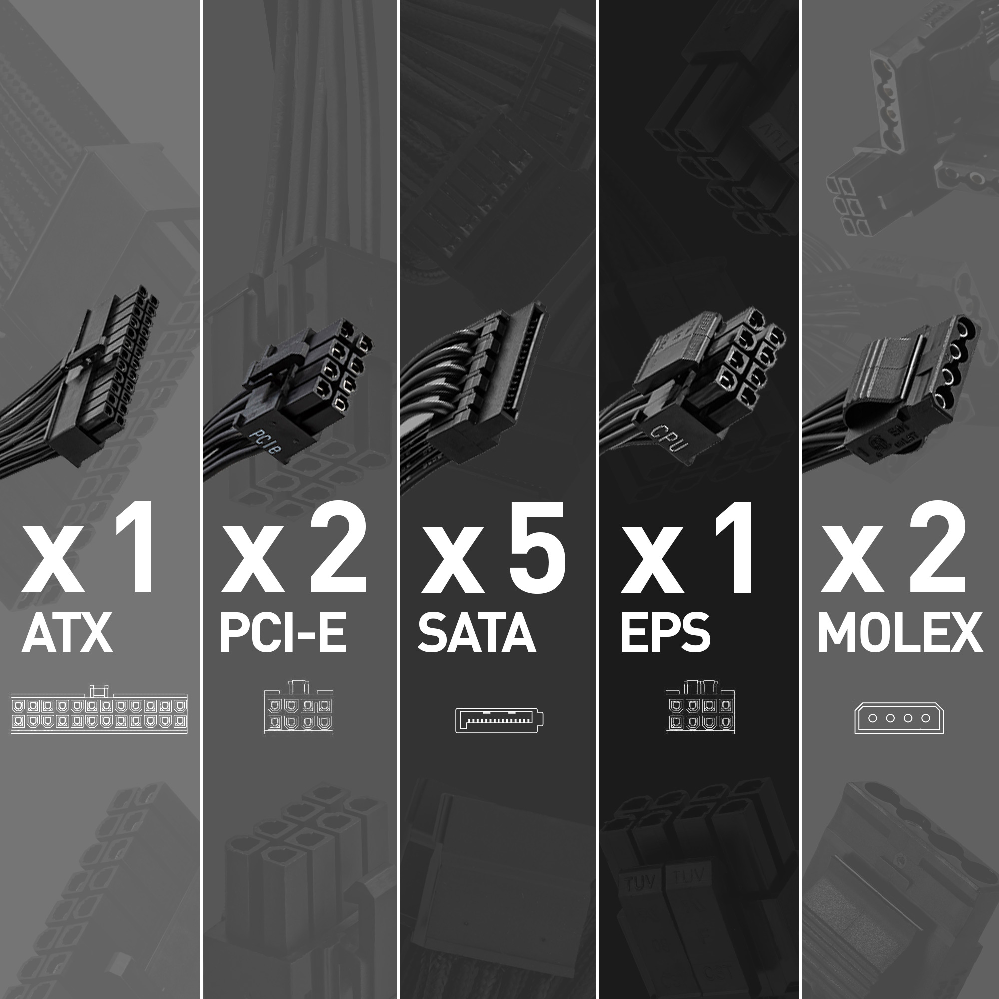 Al ofrecer una amplia gama de opciones de conectividad, la fuente de alimentación para juegos MAG garantiza una amplia compatibilidad de hardware. Conecta varios discos duros, SSD, tarjetas gráficas y otros componentes para satisfacer tus necesidades.