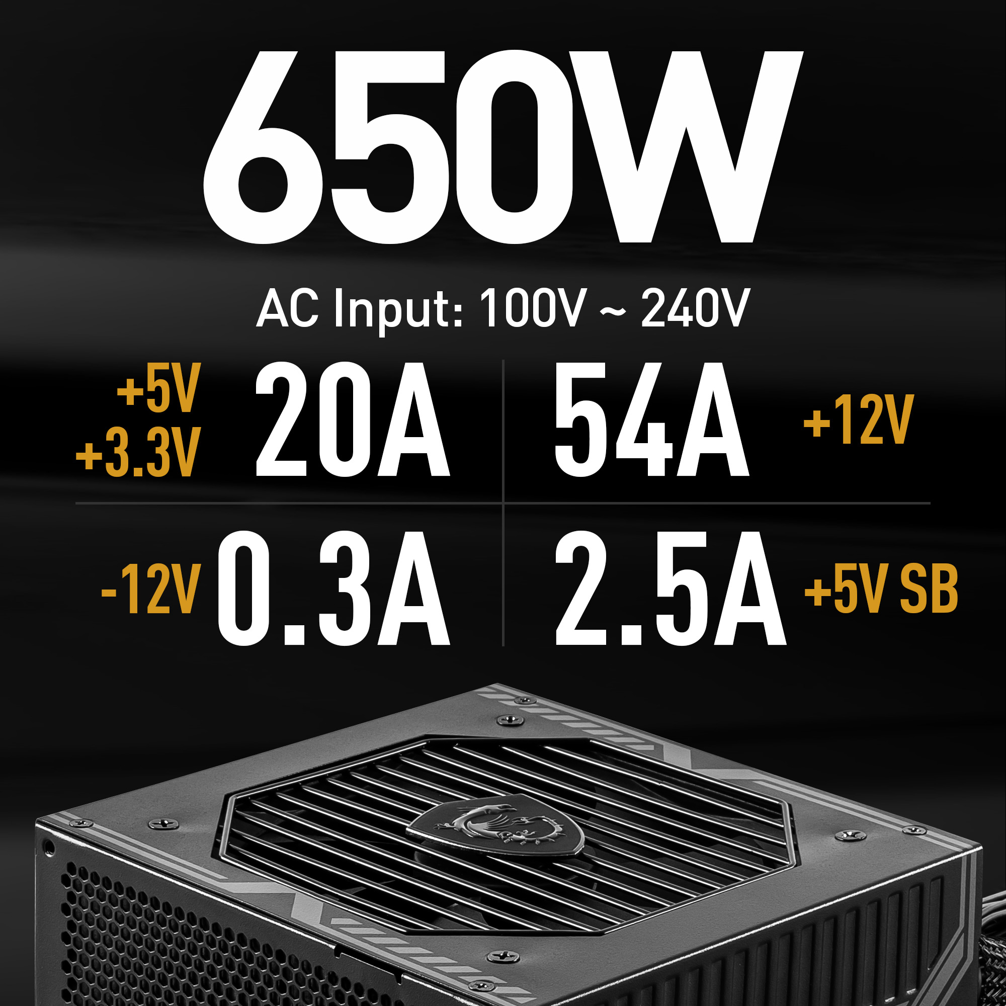 Las potentes entrañas de la fuente de alimentación para juegos MAG se traducen en unas especificaciones impresionantes, que proporcionan al sistema potencia de sobra para los componentes informáticos más modernos y rápidos.